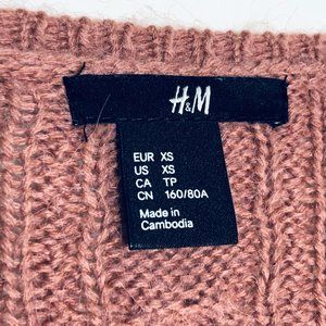 H&M | y2k Dusty Pink Cardigan Cable Knit Pocket Sweater Button Front Long Sleeve