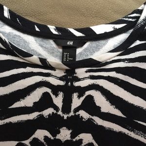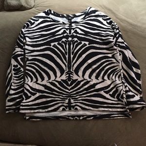 Loose fitting zebra print sweatshirt. A little longer in the back than in the front.