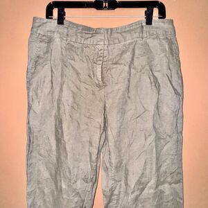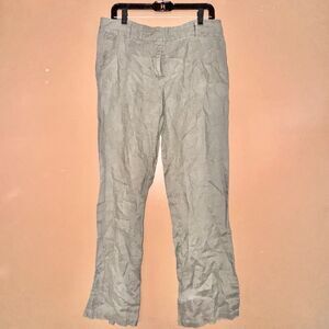 H&M 100% Linen Taupe Green Women's Pants - Size 12 - Excellent Condition