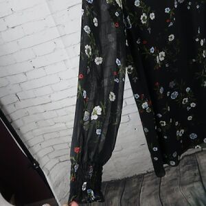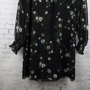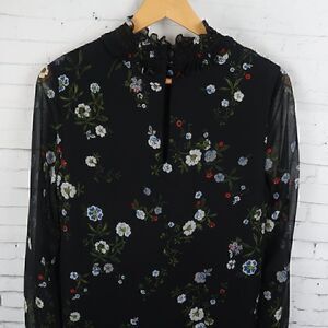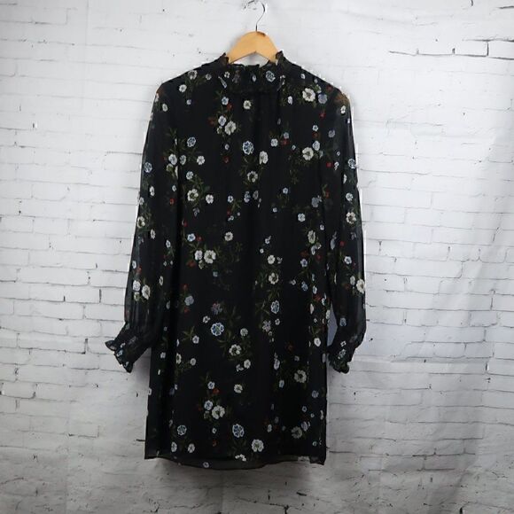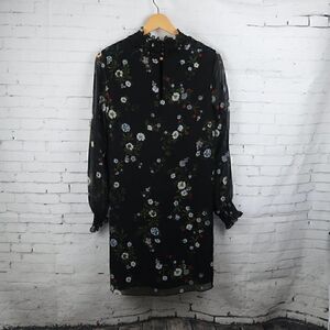 BLACK FLORAL LONG SLEEVE MOCK NECK MIDI SHIFT DRESS LINED SIZE 4 BY H&M PRE OWNED NO FLAWS
