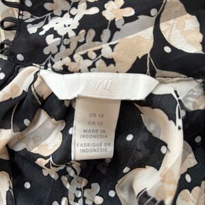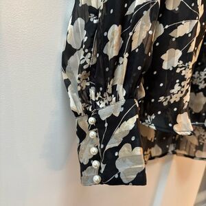 H&M Black Floral Print Blouse with Pearl Button Cuffs – Size 12