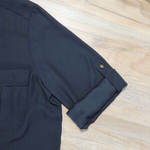 🔹️H&M Black Mandarin Neck Button-up Blouse w/Pockets Size 10