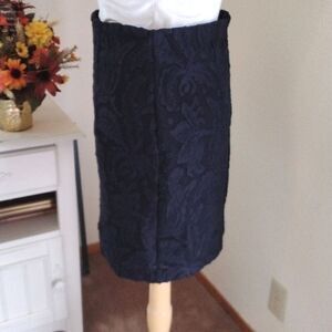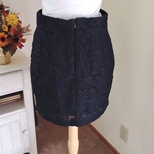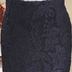 Perfect for a special occasion or work. Bold black lace. Fully lined. Back zip. Size 8 measures 30 at waist, 38 at hips. 18 long from top to bottom. So pretty!