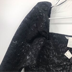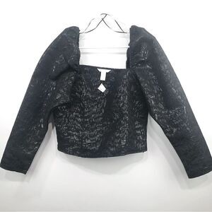 H&M Black Metallic Pattern Bustier Peasant Crop Blouse