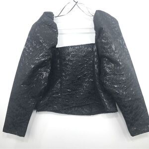 H&M Black Metallic Pattern Puff Sleeve Peasant Crop Blouse