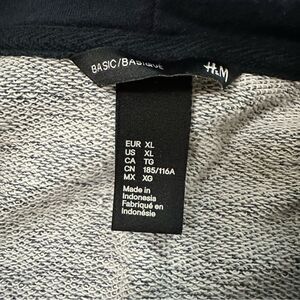 This H&M zip-up sweater in a navy blue features a full-length front zipper and a cozy hood with drawstrings