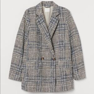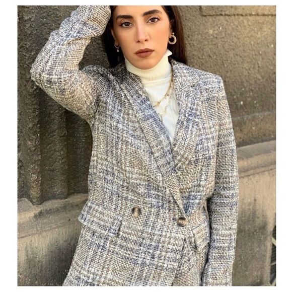 Double-breasted jacket in cotton-blend bouclé. Notched lapels and front pockets with flap. Lined.