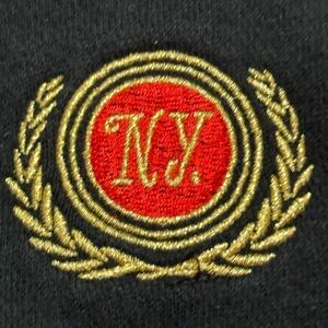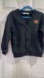 Classic black cardigan with a button-up front. It features a stylish emblem on the chest.