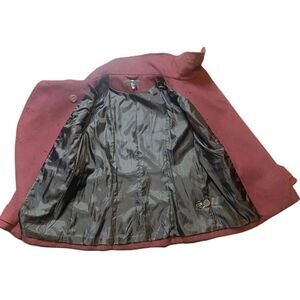 H&M Burgundy DoubleBreasted ButtonClosure FoldedCuffs Peacoat Coat