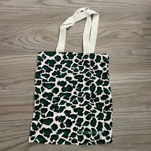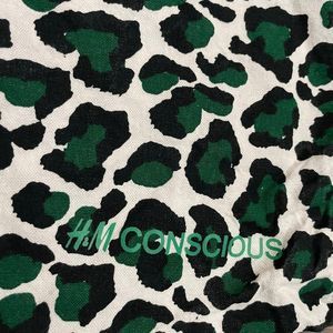 H&M Cotton Tote Green Leopard Cheetah Print 15 x 13 21” full strap In great condition