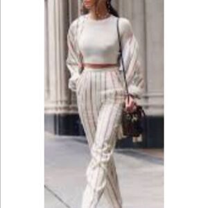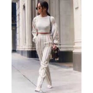 H&M Cream Striped Woman Pants NWT Size 6