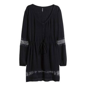 ✨Short dress with V-neck in crinkled quality with inmates, decorative lace details. Have buttons and pin tucks at the top. Long sleeves and drawstring waist.✨