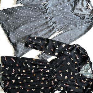Gray white polka dot dress & a black dress with yellow hugs,butterflies etc