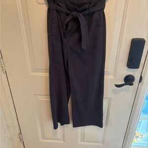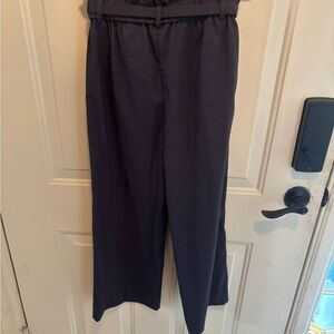 Stylish dark blue trousers with a tie-waist. Ideal for versatile wear.