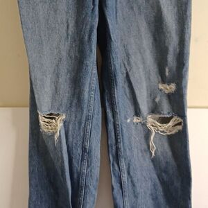Stylish distressed blue jeans with a classic fit. Perfect for casual wear.