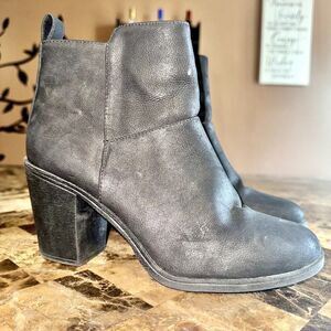 H&M Divided Black Leather Suede Block Heel Zip Up Boots Booties