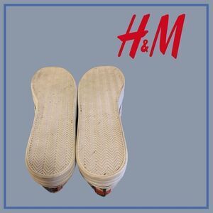 Cute! pair of H&M Divided women's canvas black, floral, platform loafers / sneakers.