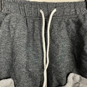 Super cute pair of shorty drawstring shorts measuring 13 inches laying flat at the elastic waist and 10 inches in length.