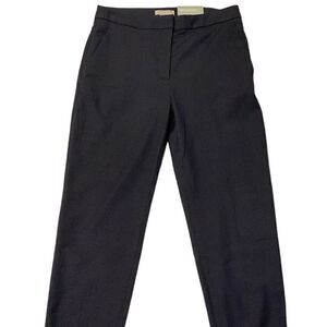 Everybody signature fit polka dot printed ankle pant with front zipper closure, extended tab button front closure, hidden interior button closure, two front slip pockets, two faux back pockets, side split hem, and belt loops