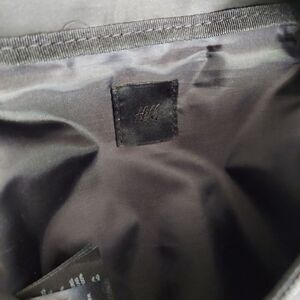 Waist bag in woven fabric with an embroidered text motif. One large compartment with a concealed zip at the front and one zipped compartment at the back. Adjustable waist strap with a plastic fastener. Lined.