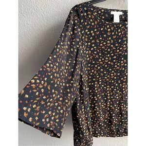 H & M Floral Blouse Black / orange& yellow flowers 100% viscose Excellent Condition Size 12