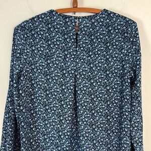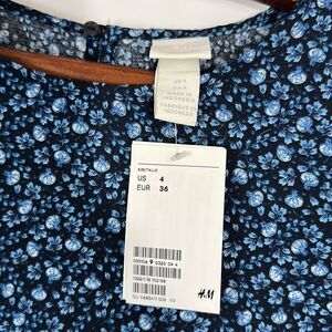 H&M Floral Tunic Shift Dress Long Tie Sleeves Blue Size 4