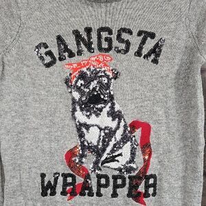 H&M Gangsta Wrapper Sequin Pug Dog Gray Crew Neck Sweater Urban Hip Christmas XS
