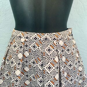 Cute black, orange & white geometric high waist circle skirt. Pleated front. Side invisible zip closure. Fully lined. Fabric tags have been removed. Feels like a polyester blend. H&M Size 2