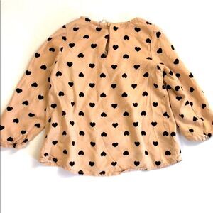 H&M girls lightweight top. Tan colored with black hearts throughout.