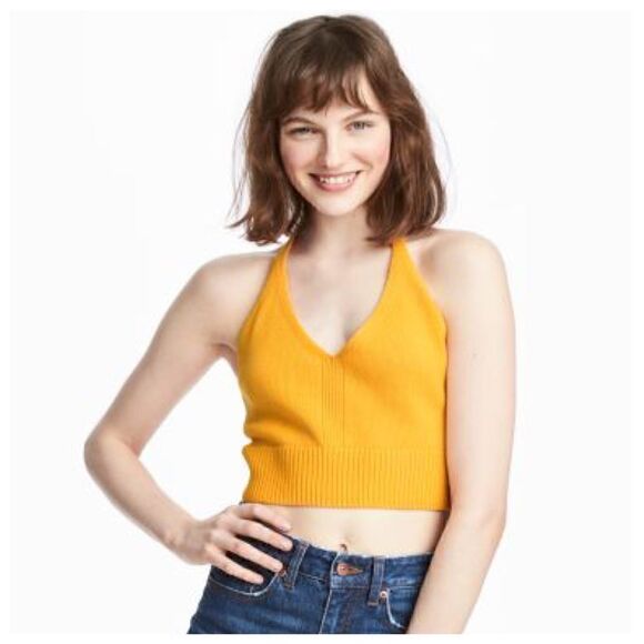 H&M Knitted Halter-Neck Crop Top Mustard Yellow