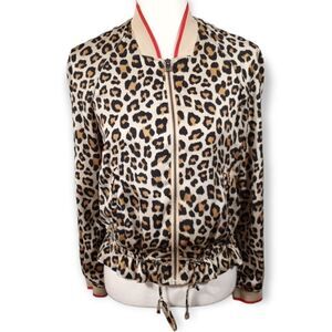 H&M LEOPARD PRINT CREAM, BLACK, & RED SATIN BOMBER JACKET SZ.4 EUC
