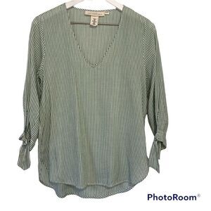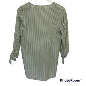 H&M LOGG Green & White Seersucker Stripe Tie Cuff Long Sleeve Top