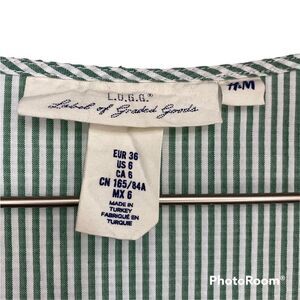 H&M LOGG Striped Green & White Seersucker Tie Cuff Long Sleeve Top size 6