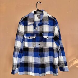 H&M Men's Relaxed Fit Blue and White Plaid Heavy Flannel Button Down Shirt in Medium.