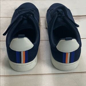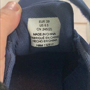 Navy blue. Never worn but they do have some marks on the sides. Please see pictures. Size 6.5 H1