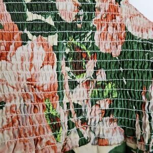 Romper in stretch cotton twill. Square, ruffle-trimmed neckline, smocked bodice, and short puff sleeves with elastic at shoulders and cuffs. Side-seam pockets and short, wide legs.