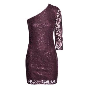 One Shoulder Sequin Dress in gorgeous deep purple / maroon color.