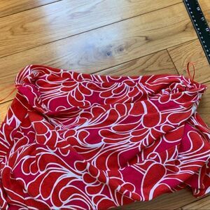H&M Rayon two tone red/pink + white outlined flowers sz 10 + summer + casual
