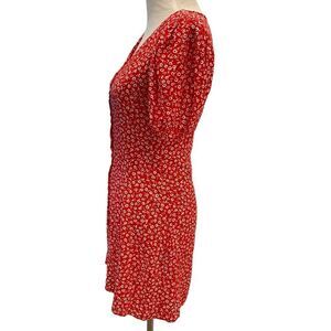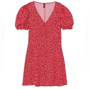 H&M Red Ditsy Floral Boho Festival Shortsleeved Flowy Mini Button Front Sundress