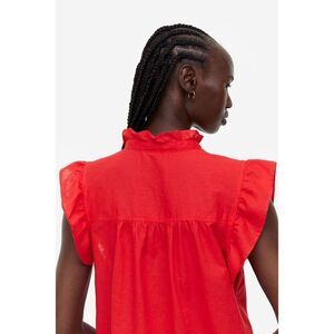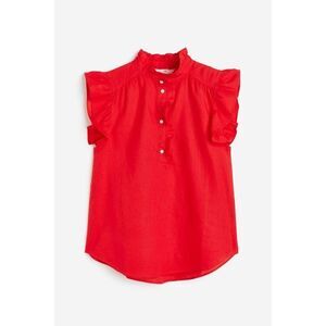 ✨H&M Red Ruffle-Trimmed Linen-Blend Blouse Sz XL Top✨