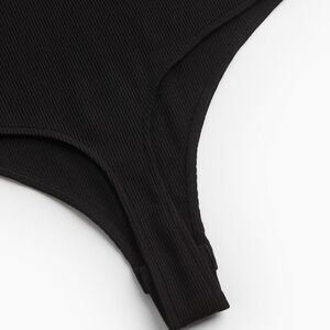 In excellent condition. Thong bodysuit in ribbed jersey. Wide shoulder straps, scoop neck front and racerback, and concealed snap fasteners at gusset.