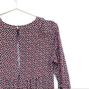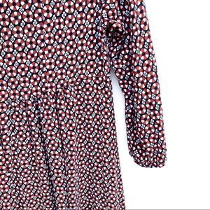 H&M Rust Navy Floral Print 3/4 Sleeve Dress