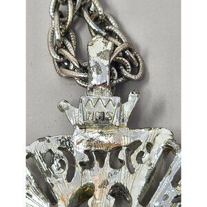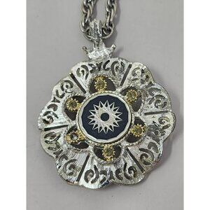 HMS Vintage Medallion Necklace & Silver Tone Silver Black Pendant