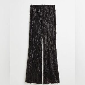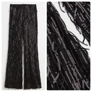 Pants in woven, sequined. High waist, elasticized waistband, and legs with flared hems. Lined.