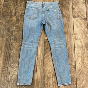 Light blue distressed jeans. Waist (flat) approx 17” Rise approx 11” 99% cotton 1% elastane