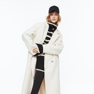 Rib-knit sweater with wool content. Turtleneck, long, wide raglan sleeves, and slit at sides.