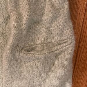 Very nice sweater with pockets. It is lovely with 58% polyamide, 36% acrylic, 4% polyester and 2% fiber