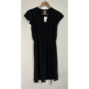 H&M Womens A Line Mini Dress Cap Sleeve V Neck Pleated Tie Waist Size 2; Approximate measurements: chest 17" waist 15" length 35"