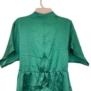 H&M Women's Turquoise Green Poly Satin Charmeuse Stand Collar Short Batwing Slee