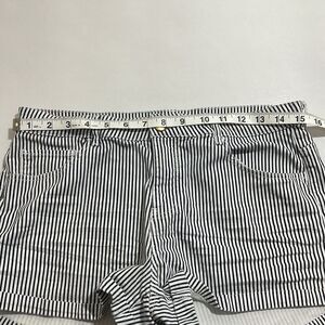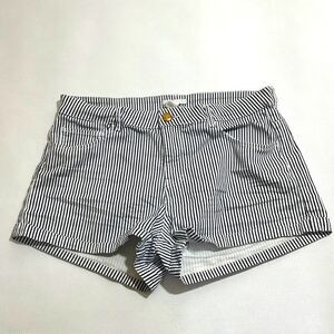 H&M Women’s Striped Short - Size (10) White with Black Striped short with front and back pockets, belt loops, zipper fly, and gold button. good condition with normal wear